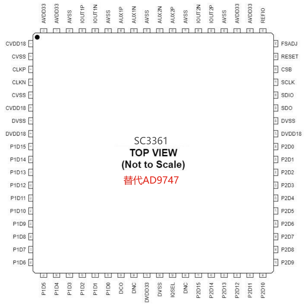 SC3361 双通道 16 位 250MSPS DAC国产替代ADI AD9747