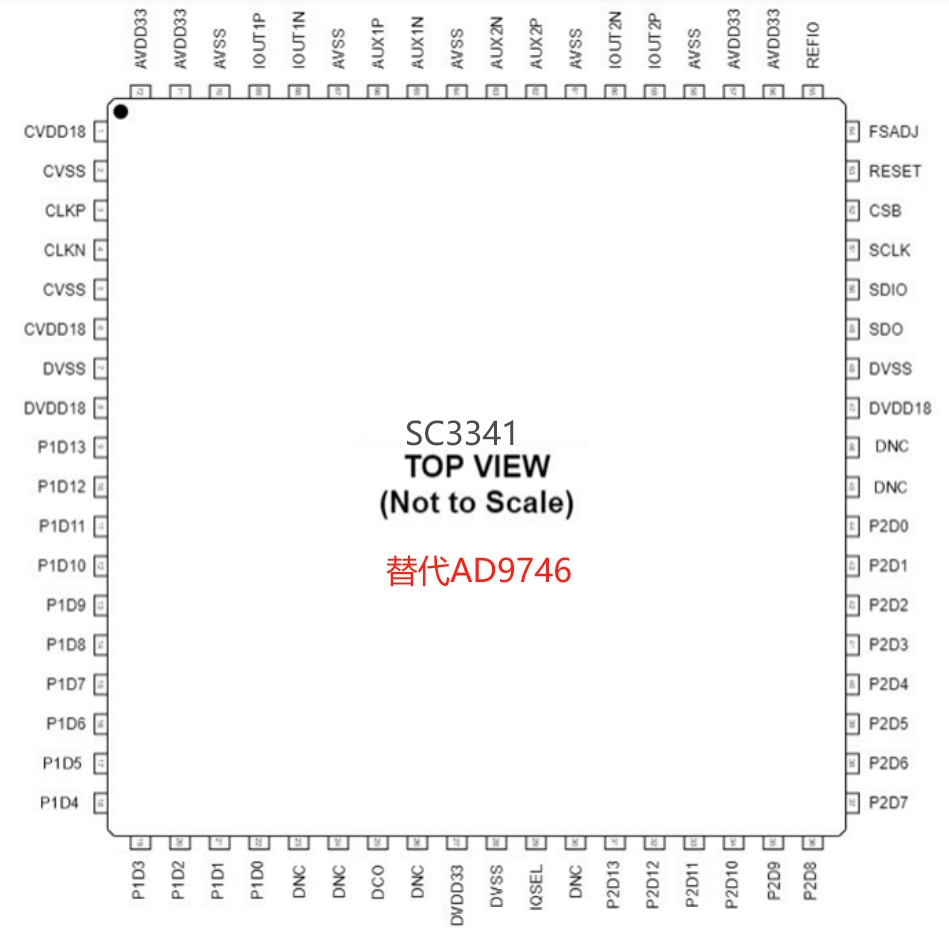 SC3341 双通道 14 位 250MSPS DAC国产替代ADI AD9746