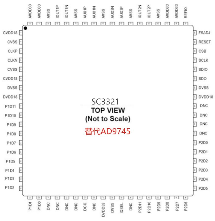 SC3321 双通道 12 位 250MSPS DAC国产替代ADI AD9745