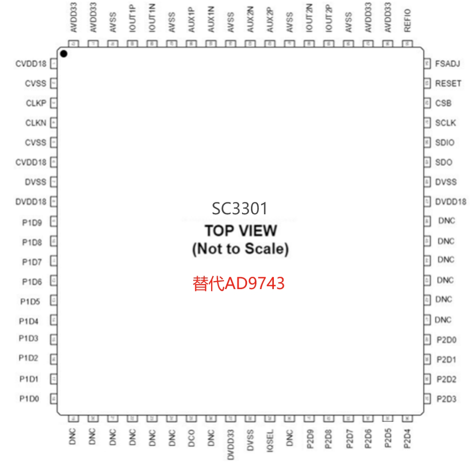 SC3301 双通道 10 位 250MSPS DAC国产替代ADI AD9743